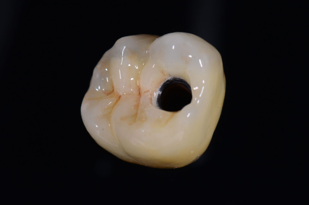 Cette couronne toute en titane avec une stratification céramique est le parfait compromis entre résistance et esthétique !